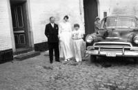 Corbais - Les mariés posent devant la Chevrolet Bel-air