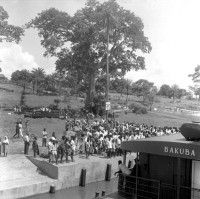 Fleuve Congo - Attroupement sur la rive à l'arrivée du Bakuba